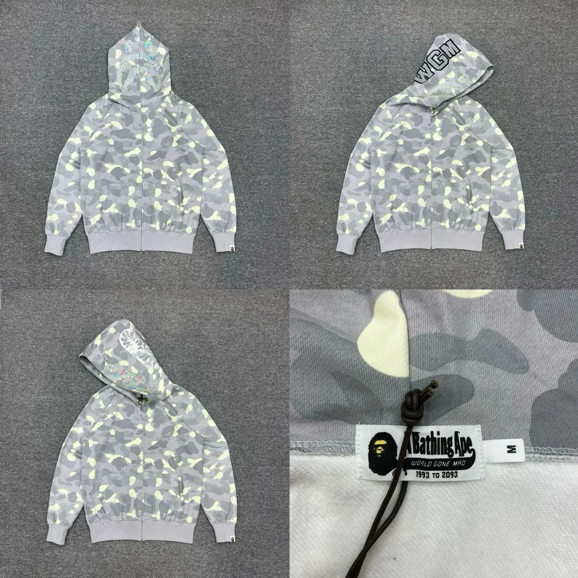A Bathing Ape World Gone Mad Grey Hoodie in the Litbuy spreadsheet.This A Bathing Ape World Gone Mad hoodie is a must – have for streetwear lovers. The grey camo pattern gives it an edgy and urban look. It features a full – zip design and a hood with unique branding details. The material is comfortable, making it perfect for everyday wear. Whether you’re hitting the streets or hanging out with friends, this hoodie will make you stand out with its bold and stylish design.