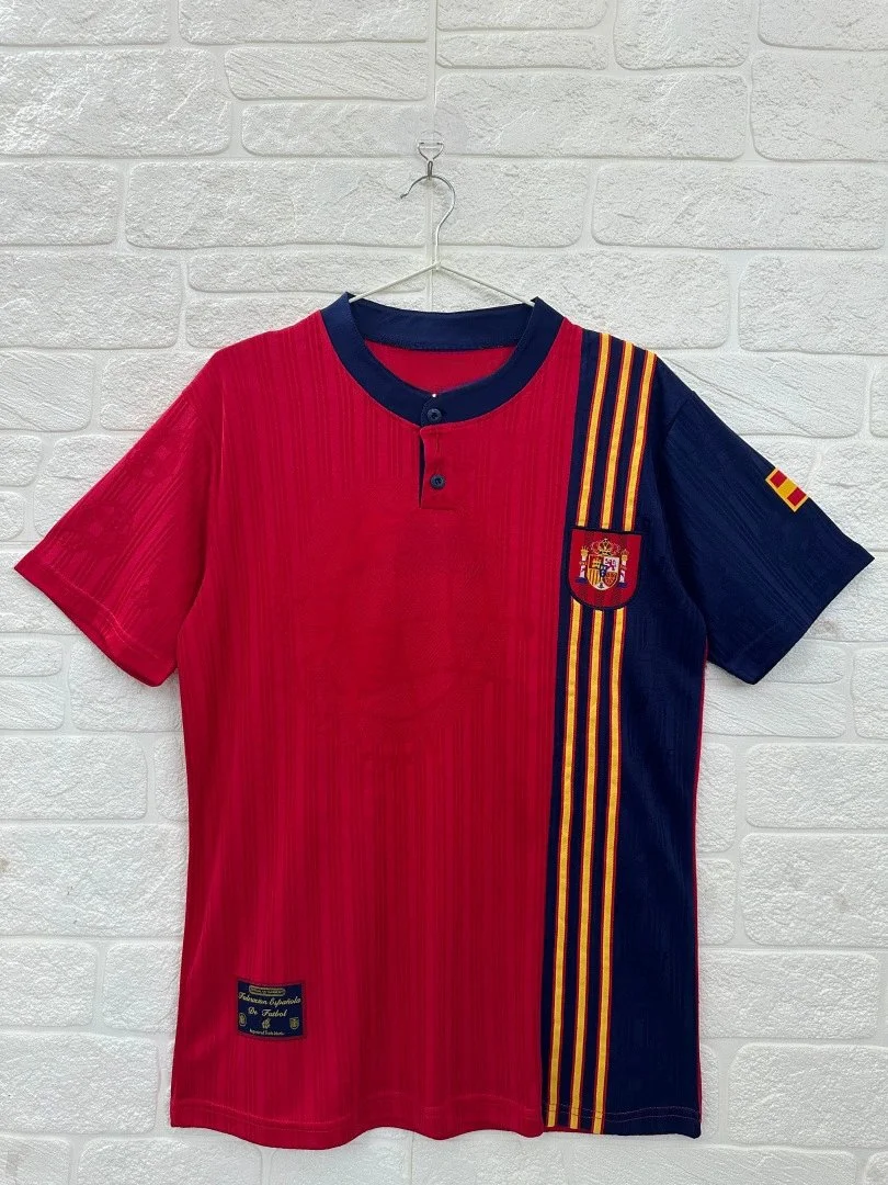 Adidas Spain Retro Red Jersey Stylish in the Litbuy spreadsheet.This is an Adidas Spain national team retro – style football jersey. The classic red body with navy blue sleeves gives it a striking look. The yellow stripes running down the side add a touch of elegance. The iconic Spanish crest on the chest shows your support for the team. Made with quality materials, it’s comfortable for both playing football and casual wear. Show your love for Spanish football with this stylish and unique jersey.