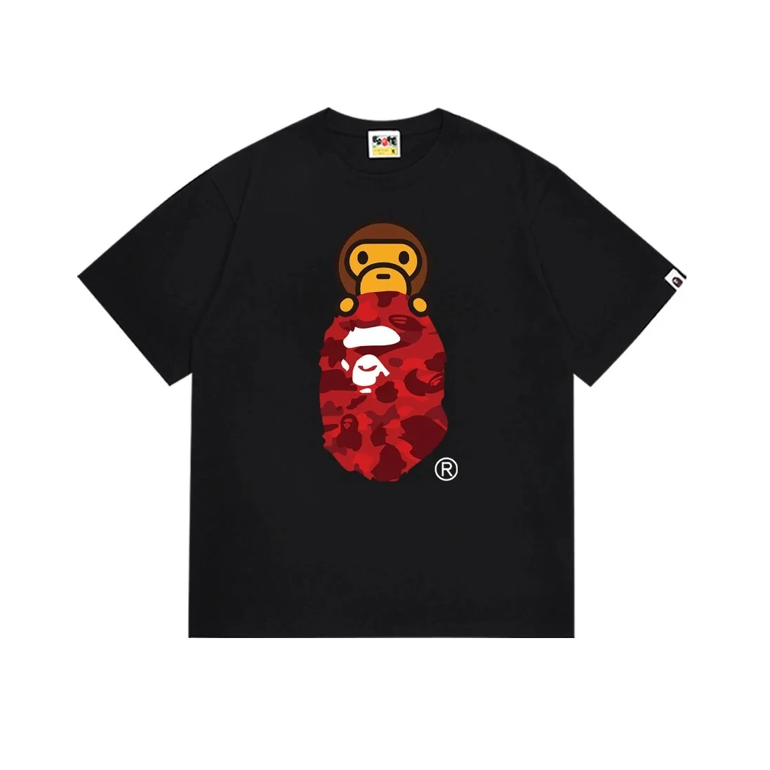 BAPE Black Ape Camo T shirt, Urban Fashion in the Litbuy spreadsheet.This BAPE black T – shirt is a street – style gem. It features the iconic BAPE ape head design with a striking red camouflage pattern on the front. The bold and unique look makes it a statement piece for any streetwear enthusiast. Made from quality materials, it offers both comfort and durability. Whether you’re hitting the city streets or hanging out with friends, this T – shirt is sure to turn heads and show off your edgy fashion sense.