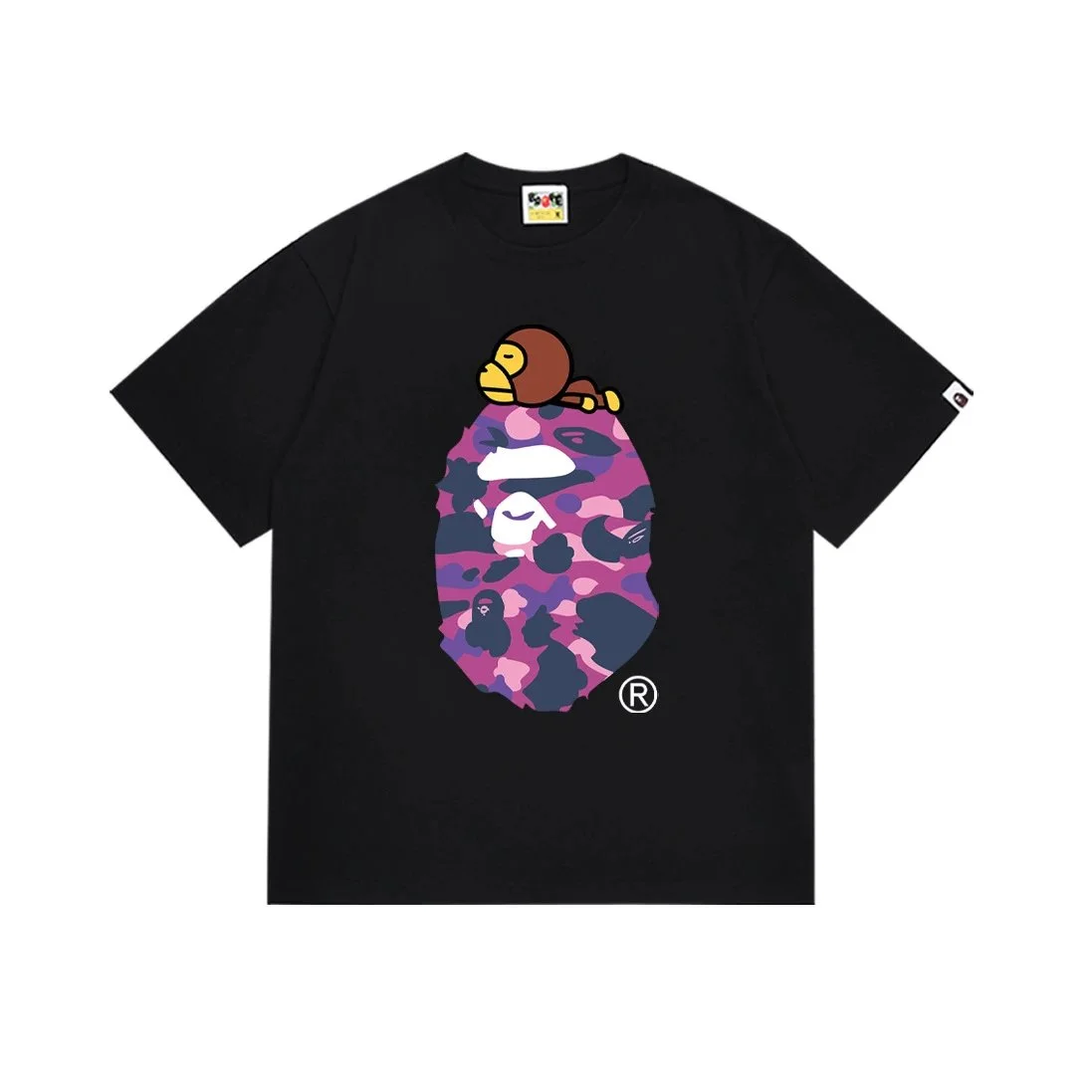 BAPE Black Ape Emblem T Shirt: Streetwear in the Litbuy spreadsheet.This BAPE t – shirt is a must – have for streetwear lovers. The black base color provides a sleek look, while the iconic BAPE ape head in a unique pink and purple camouflage pattern steals the show. There’s also a cute little ape figure on top of the emblem, adding a playful touch. Made from high – quality fabric, it’s comfortable for all – day wear. Whether you’re hitting the streets or hanging out with friends, this t – shirt makes a bold fashion statement.