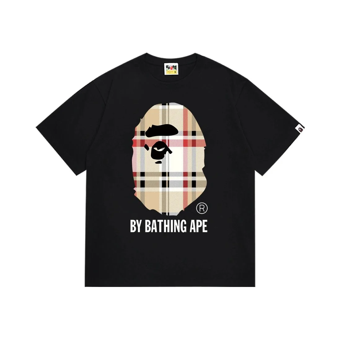 BATHING APE Black Plaid Ape T Shirt: Urban