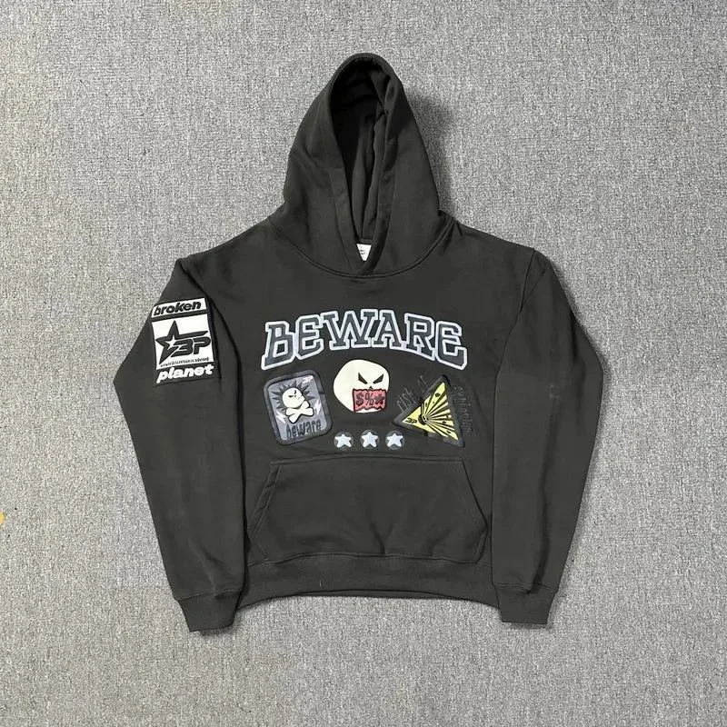 Broken Planet Black Hoodie: Beware Graphic in the Litbuy spreadsheet.This Broken Planet hoodie is a must – have for streetwear enthusiasts. It features a bold “BEWARE” graphic on the front, along with various unique patches that give it an edgy and urban look. Made from comfortable material, it’s perfect for casual outings or just lounging around. The black color makes it versatile and easy to pair with different bottoms. Whether you’re into skate culture or just love a cool, statement piece, this hoodie has you covered.