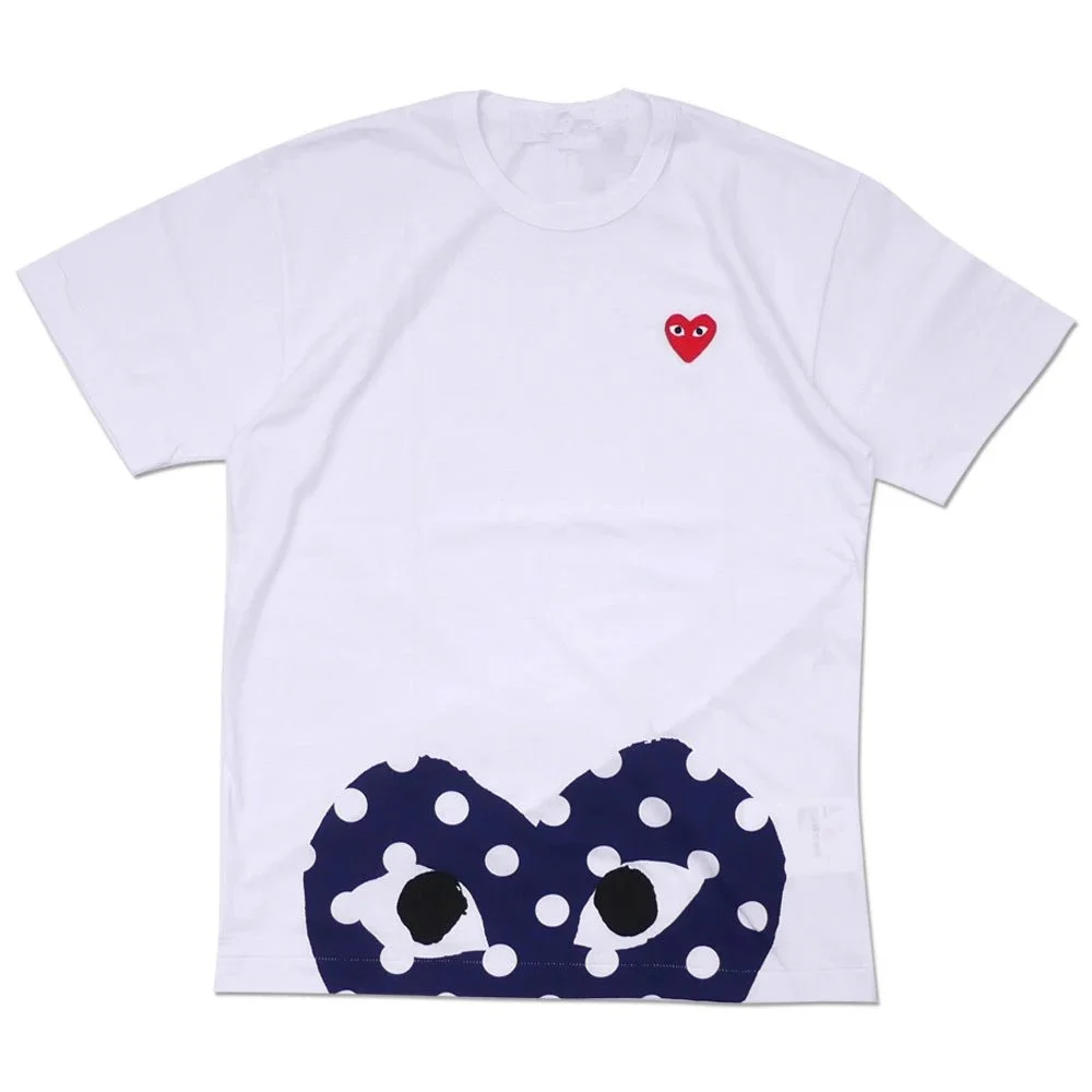 CDG PLAY White Tee, Quirky in the Litbuy spreadsheet.This is a stylish white T – shirt from Comme des Gar?ons PLAY. The brand is well – known for its unique and edgy designs. The front features a small red heart with eyes on the chest, a signature of the PLAY series. At the bottom, there’s a large navy blue heart with white polka dots and eyes, adding a fun and eye – catching element. Made from quality fabric, it’s comfortable for daily wear and is sure to make you stand out with its distinctive and trendy style.