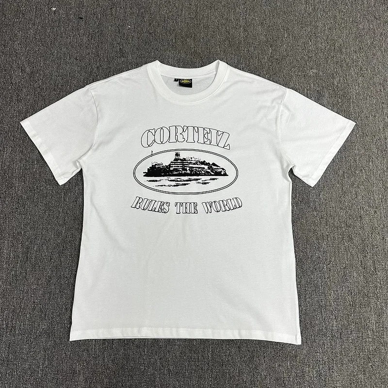 / Corteiz White Tee: Ship Emblem, Fashionable