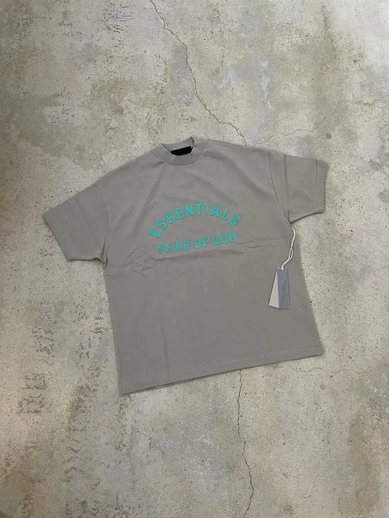 Fear of God Essentials Grey Tee: Street ready Fashion Piece in the Litbuy spreadsheet.This Fear of God Essentials t – shirt is a must – have for streetwear lovers. With its relaxed fit and unique grey hue, it offers a laid – back yet stylish look. The bold “ESSENTIALS FEAR OF GOD” logo in teal adds a pop of color and brand recognition. Made from high – quality materials, it’s comfortable for all – day wear. Whether you’re hitting the streets or just chilling, this t – shirt is the perfect blend of comfort and urban style.