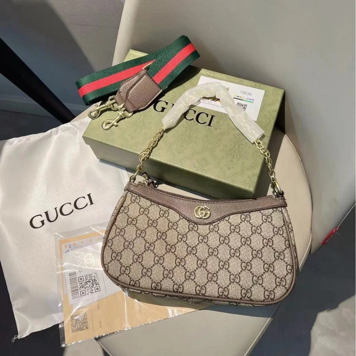 GUCCI Beige Handbag: Exquisite Monogram in the Litbuy spreadsheet.This is a stunning GUCCI handbag. It features the brand’s iconic monogram pattern in beige and brown, giving it a classic and luxurious look. The bag comes with a chain – strap and an additional colorful webbed strap for versatile styling. The gold – toned hardware adds a touch of elegance. It’s spacious enough to hold your daily essentials while being a statement piece that can elevate any outfit. Whether for a casual day out or a special occasion, this handbag is a must – have for fashion lovers.