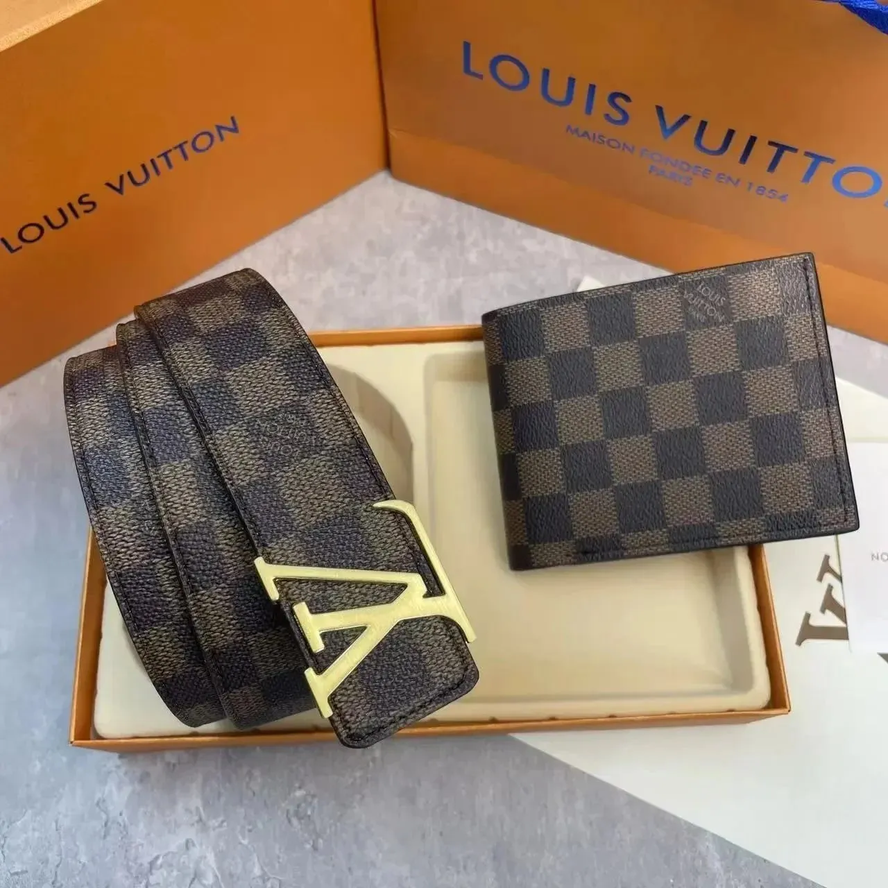 Louis Vuitton Brown Checkered Belt in the Litbuy spreadsheet.This is a stunning Louis Vuitton belt and wallet set. The iconic checkered pattern is instantly recognizable and screams luxury. The belt features a bold LV – shaped gold – tone buckle that adds a touch of elegance. The wallet, with its matching checkered design, is both stylish and practical, offering enough space for cards and cash. Made from high – quality materials, this set is not just an accessory but a statement of refined taste and high – end fashion.