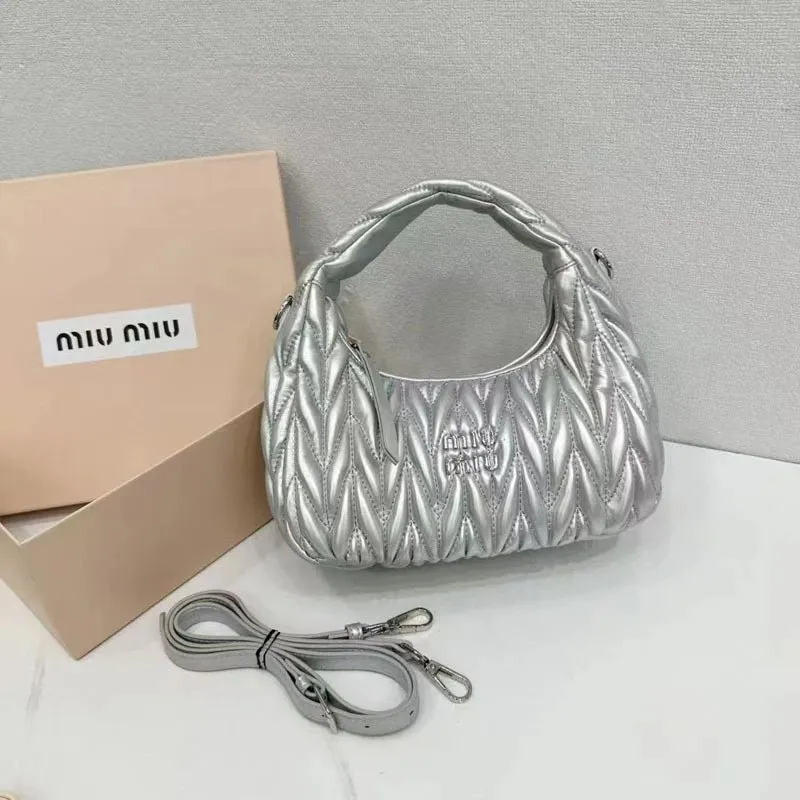 / Miu Miu Silver Quilted Handbag: Stylish