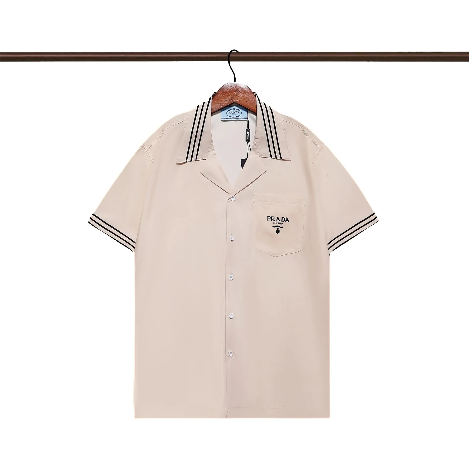 Prada Beige Short Sleeved Shirt: Luxury in the Litbuy spreadsheet.This Prada short – sleeved shirt is a blend of luxury and style. The soft beige hue gives it a sophisticated look, while the black stripes on the collar and cuffs add a touch of nautical charm. The Prada logo on the pocket is a signature detail that screams high – end fashion. Made with quality materials, it offers both comfort and a statement – making appeal. Whether for a casual day out or a semi – formal event, this shirt is sure to turn heads.