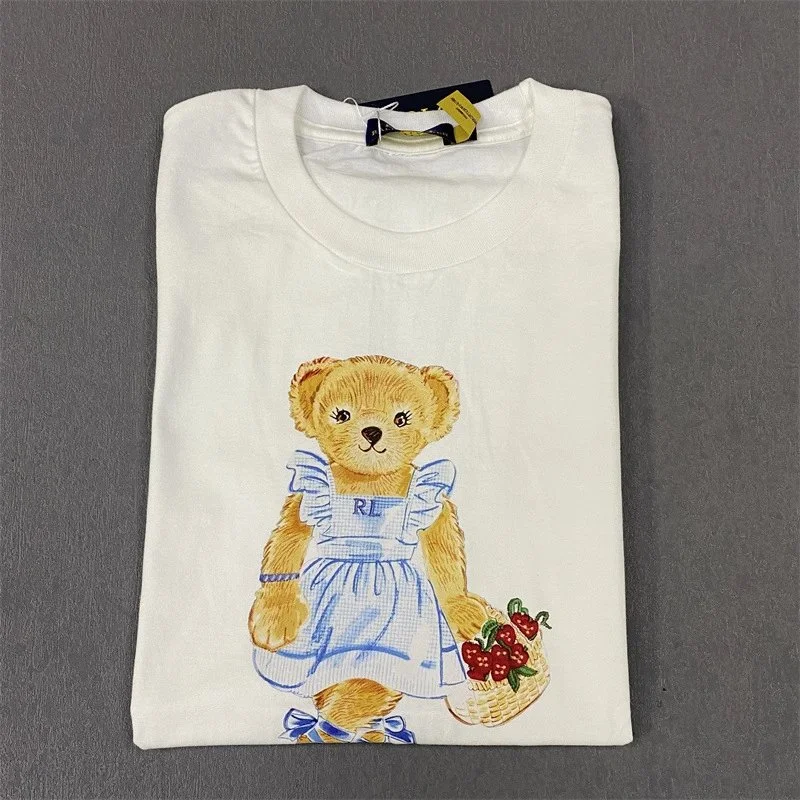 Ralph Lauren Teddy T shirt, White, Adorable in the Litbuy spreadsheet.This is a cute white T – shirt from Ralph Lauren. It features an adorable teddy bear design. The bear is wearing a blue gingham frock and holding a basket of strawberries. The embroidery is detailed and adds a touch of charm. Made from soft fabric, it’s comfortable for daily wear. Whether you’re going for a casual look or want to add a sweet element to your outfit, this T – shirt is a great choice.