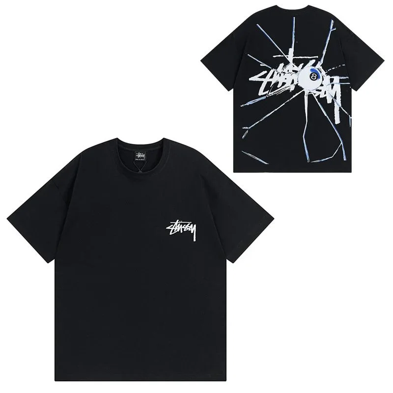 Stussy Black T Shirt: Iconic Logo in the Litbuy spreadsheet.This Stussy black T – shirt is a must – have for streetwear lovers. The front features the iconic Stussy logo, while the back showcases a bold, shattered glass design with a billiard ball, giving it an edgy and unique look. Made from high – quality fabric, it offers both comfort and style. Whether you’re hitting the streets or just hanging out, this T – shirt makes a statement. It combines the classic Stussy street style with a fresh, eye – catching graphic.