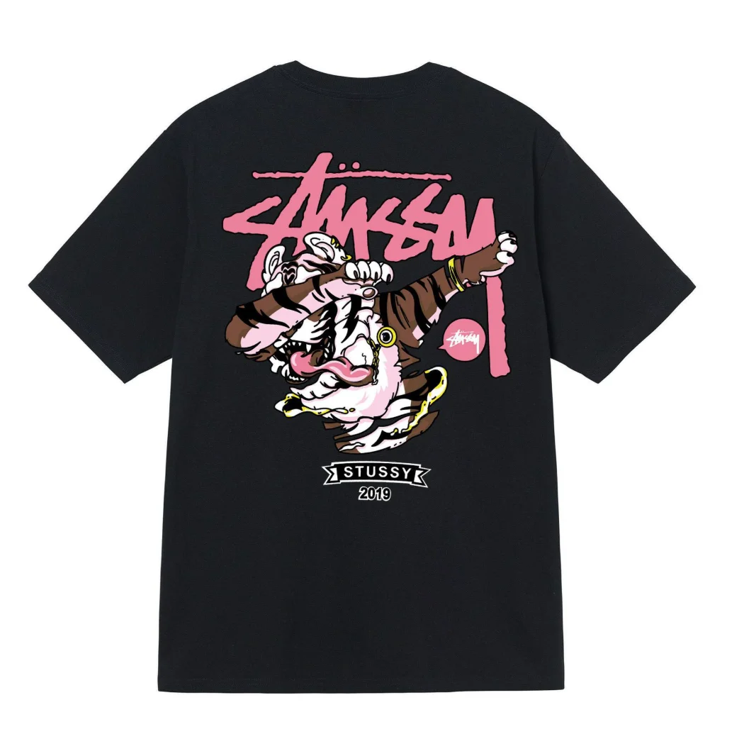 Stussy Black T Shirt with Pink Tiger Design in the Litbuy spreadsheet.This Stussy t – shirt is a must – have for streetwear lovers. The black base is the perfect canvas for the eye – catching, vibrant pink and detailed tiger graphic on the back. The design combines a fierce tiger with Stussy’s iconic logo in a graffiti – like style, giving it an edgy, urban look. Made from quality materials, it’s comfortable to wear and stands out in any crowd. Whether you’re hitting the streets or hanging out with friends, this t – shirt makes a statement.