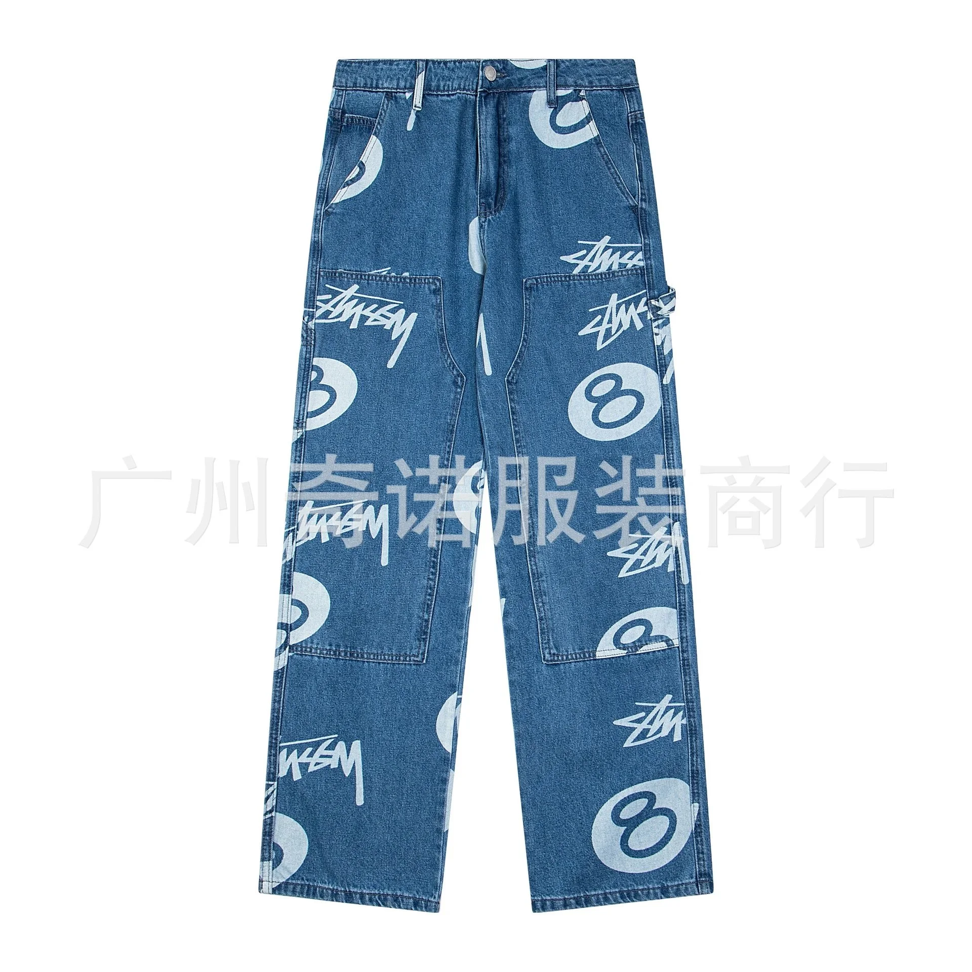 Stussy Blue Denim Jeans: Graffiti Prints for