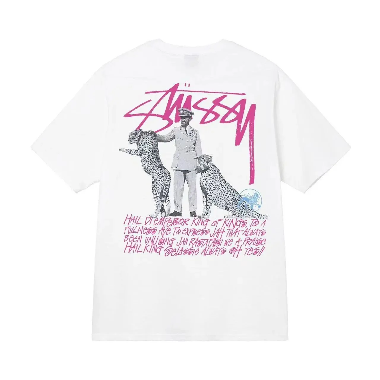 Stussy White Graphic T: Regal Streetwear in the Litbuy spreadsheet.Check out this sick St??ssy white T – shirt! It’s got a super unique design on the back with a guy in a uniform flanked by leopards. The bold pink St??ssy logo and the rad text add a ton of character. Made from quality material, it’s comfortable and perfect for a laid – back streetwear look. Whether you’re hitting the skate park or just hanging out, this T – shirt is sure to turn heads and make a statement. It’s a must – have for anyone who loves edgy, urban fashion.