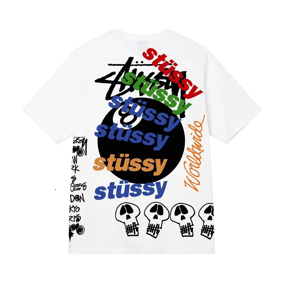 Stussy White T Shirt: Street ready, Graphic in the Litbuy spreadsheet.This Stussy white t – shirt is a must – have for streetwear enthusiasts. The back is adorned with a bold and colorful graphic featuring the iconic Stussy logo in various colors and styles. The combination of the black circle, vibrant text, and edgy skull designs gives it a unique and urban look. Made from comfortable fabric, it’s perfect for casual outings or making a statement in the city. Whether you’re hitting the skate park or just hanging out with friends, this t – shirt will keep you looking stylish and on – trend.