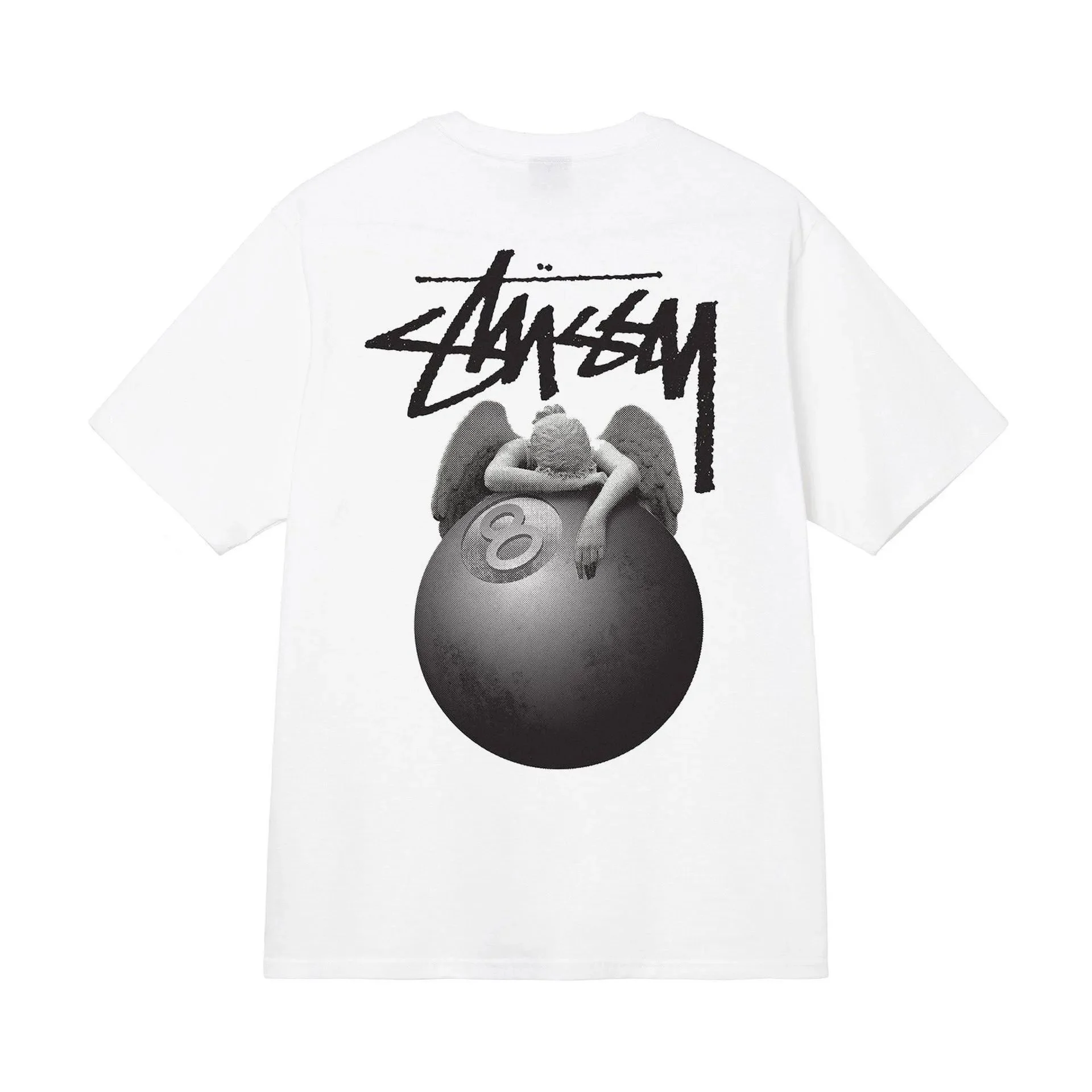 Stussy White T Shirt: Unique Angel & 8 Ball