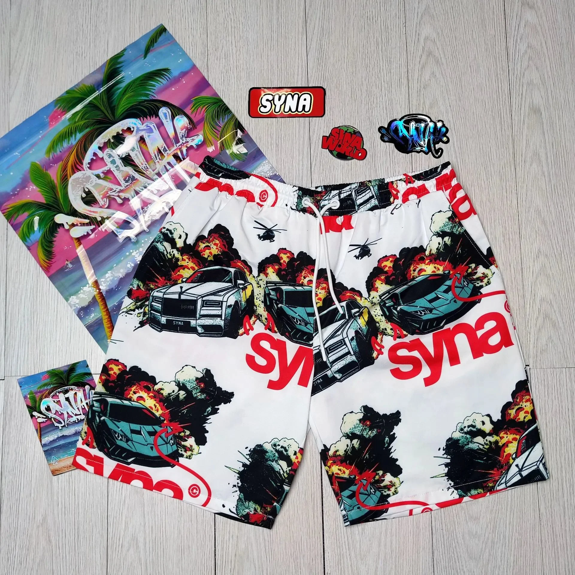 SYNA Car Themed White Shorts: Trendy in the Litbuy spreadsheet.These SYNA shorts are a must – have for anyone who loves street – style fashion. The white base is covered in an eye – catching, graffiti – inspired print featuring cars and dynamic scenes. The bold red “SYNA” branding stands out, adding an extra edge. Made from comfortable material, they’re perfect for a casual day out, at the beach, or just lounging. The unique design ensures you’ll stand out from the crowd and make a statement with your fashion choice.
