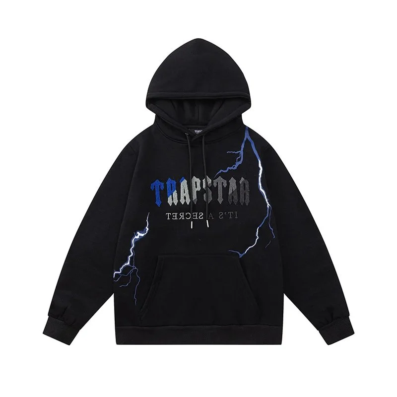 Trapstar Black Hoodie: Edgy Design, Urban in the Litbuy spreadsheet.This Trapstar hoodie is a must – have for streetwear lovers. It features a bold black color with striking electric bolt graphics on the sides, adding an edgy and cool vibe. The brand name “TRAPSTAR” is prominently displayed on the front in a stylish font. Made from comfortable material, it’s perfect for casual outings or just lounging around. Its unique design makes you stand out in the crowd and shows off your urban fashion sense.