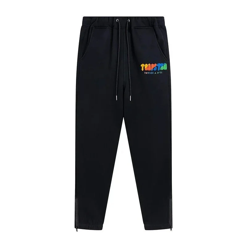 Trapstar Black Joggers: Colorful Emblem in the Litbuy spreadsheet.These Trapstar sweatpants are a must – have for streetwear lovers. In classic black, they offer a versatile base. The standout feature is the colorful “Trapstar” emblem on the thigh, adding a vibrant touch. With an elastic waistband and drawstring for a custom fit, and zippered cuffs for a modern edge, they combine style and comfort. Made from quality fabric, they’re durable and perfect for daily wear or a night out in the city.